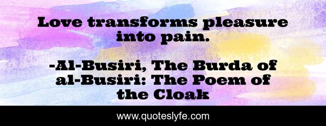 "Al-Busiri, The Burda of al-Busiri: The Poem of the Cloak Quotes." Quoteslyfe.com, 2025. Mon. 08 Dec. 2025. <https://www.quoteslyfe.com/quote/Love-transforms-pleasure-into-pain-44008>.