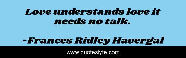 "Frances Ridley Havergal Quotes." Quoteslyfe.com, 2025. Sat. 06 Dec. 2025. <https://www.quoteslyfe.com/quote/Love-understands-love-it-needs-no-talk-275940>.