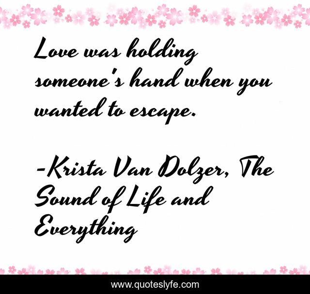 "Krista Van Dolzer, The Sound of Life and Everything Quotes." Quoteslyfe.com, 2025. Sat. 06 Dec. 2025. <https://www.quoteslyfe.com/quote/Love-was-holding-someone-s-hand-when-123554>.