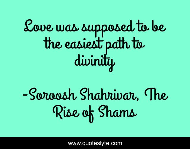 This page presents the quote "Love was supposed to be the easiest path to divinity". Author of this quote is Soroosh Shahrivar, The Rise of Shams. This quote is about the-rise-of-shams, sufi-wisdom, divinity, divine-love, divinity-within, sufism, mysticism, love, affection,.