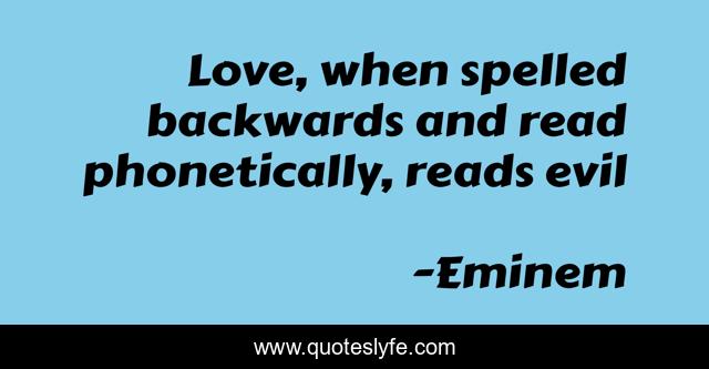 "Eminem Quotes." Quoteslyfe.com, 2025. Sun. 07 Dec. 2025. <https://www.quoteslyfe.com/quote/Love-when-spelled-backwards-and-read-phonetically-605>.