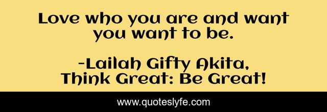 "Lailah Gifty Akita, Think Great: Be Great! Quotes." Quoteslyfe.com, 2025. Mon. 08 Dec. 2025. <https://www.quoteslyfe.com/quote/Love-who-you-are-and-want-you-142856>.