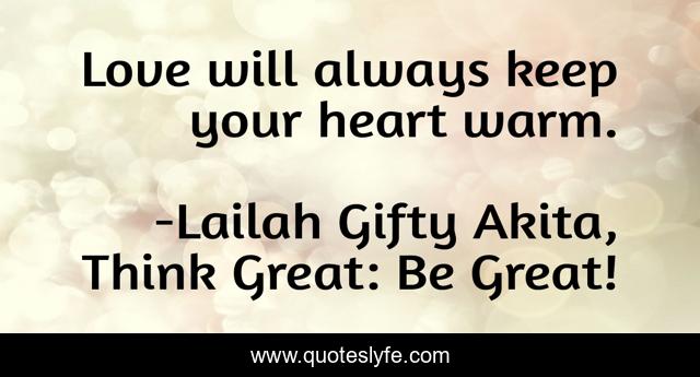 "Lailah Gifty Akita, Think Great: Be Great! Quotes." Quoteslyfe.com, 2025. Sat. 06 Dec. 2025. <https://www.quoteslyfe.com/quote/Love-will-always-keep-your-heart-warm-77361>.