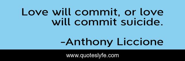 This page presents the quote "Love will commit, or love will commit suicide.". Author of this quote is Anthony Liccione. This quote is about inconstant, love, wholehearted, commitment, unconditional-love, keep-from, carry-out, devoted, accomplish,.