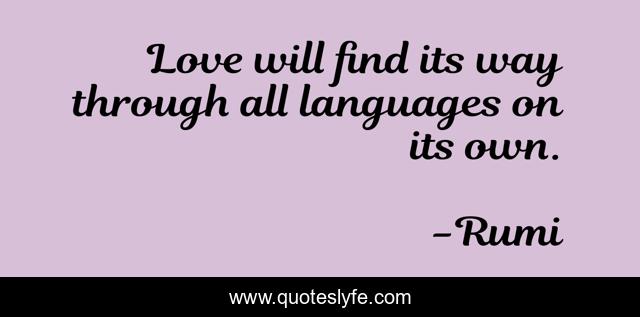 This page presents the quote "Love will find its way through all languages on its own.". Author of this quote is Rumi. This quote is about through, find, way,.