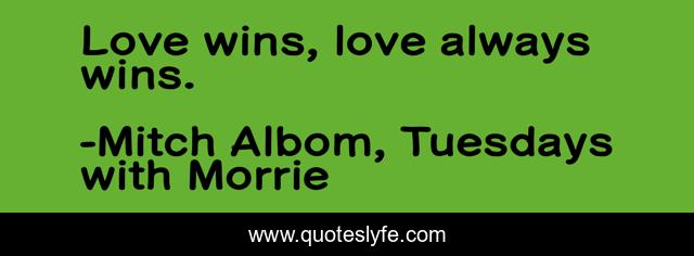 "Mitch Albom, Tuesdays with Morrie Quotes." Quoteslyfe.com, 2025. Sat. 06 Dec. 2025. <https://www.quoteslyfe.com/quote/Love-wins-love-always-wins-566>.