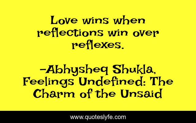 "Abhysheq Shukla, Feelings Undefined: The Charm of the Unsaid Quotes." Quoteslyfe.com, 2025. Sun. 07 Dec. 2025. <https://www.quoteslyfe.com/quote/Love-wins-when-reflections-win-over-reflexes-17574>.