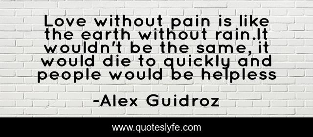 This page presents the quote "Love without pain is like the earth without rain.It wouldn't be the same, it would die to quickly and people would be helpless". Author of this quote is Alex Guidroz. This quote is about love, life, pain, affection,.