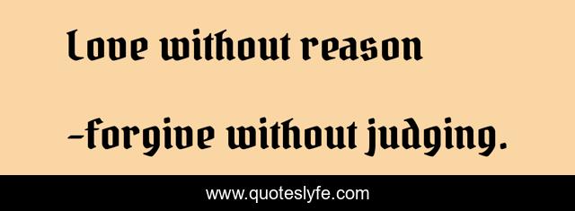 This page presents the quote "Love without reason". Author of this quote is forgive without judging.. .