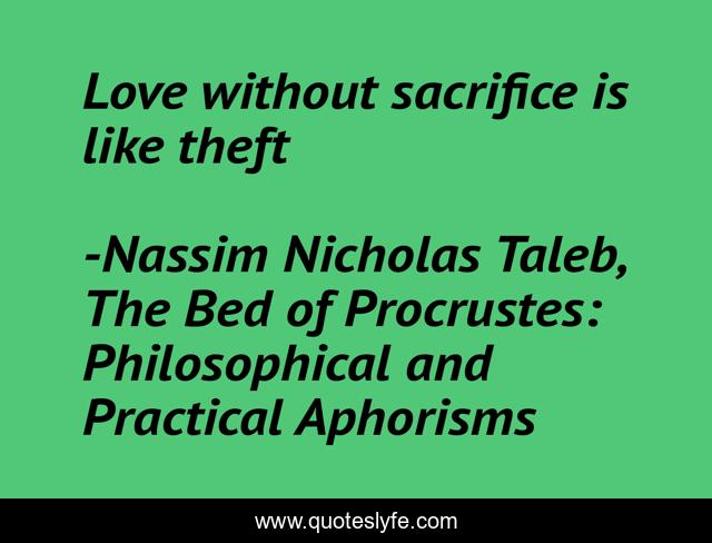"Nassim Nicholas Taleb, The Bed of Procrustes: Philosophical and Practical Aphorisms Quotes." Quoteslyfe.com, 2025. Mon. 08 Dec. 2025. <https://www.quoteslyfe.com/quote/Love-without-sacrifice-is-like-theft-197782>.
