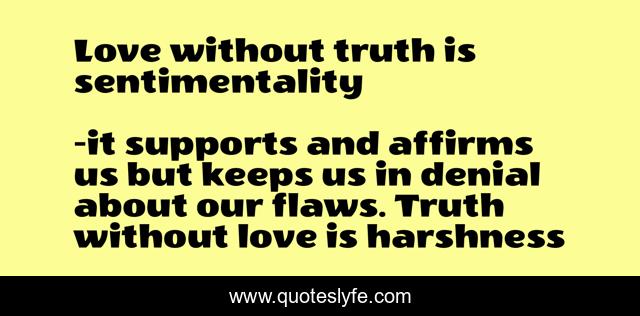 "it supports and affirms us but keeps us in denial about our flaws. Truth without love is harshness Quotes." Quoteslyfe.com, 2025. Fri. 05 Dec. 2025. <https://www.quoteslyfe.com/quote/Love-without-truth-is-sentimentality-9274>.