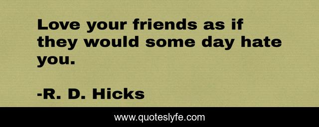 This page presents the quote "Love your friends as if they would some day hate you.". Author of this quote is R. D. Hicks. .