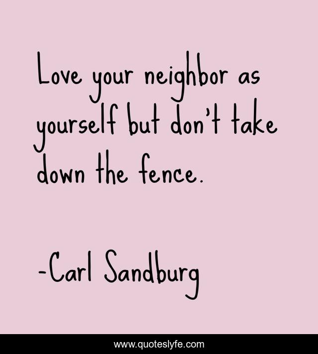 This page presents the quote "Love your neighbor as yourself but don't take down the fence.". Author of this quote is Carl Sandburg. .