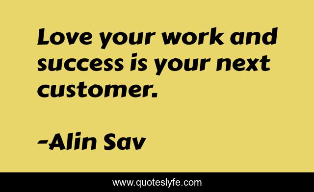 This page presents the quote "Love your work and success is your next customer.". Author of this quote is Alin Sav. This quote is about business, entrepreneurship,.
