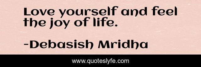 This page presents the quote "Love yourself and feel the joy of life.". Author of this quote is Debasish Mridha. This quote is about life, love, knowledge, inspirational, intelligence, philosophy, wisdom, quotes, affection,.