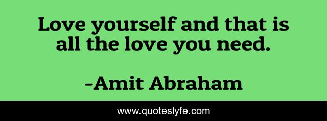 This page presents the quote "Love yourself and that is all the love you need.". Author of this quote is Amit Abraham. This quote is about love, self-esteem, self-image, affection, self-image-appreciation,.