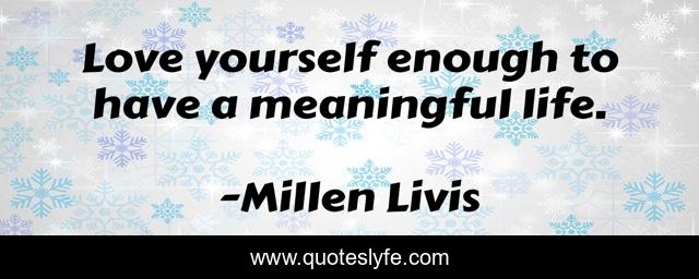 This page presents the quote "Love yourself enough to have a meaningful life.". Author of this quote is Millen Livis. This quote is about meaningful-life, love-yourself, self-love, self-help,.