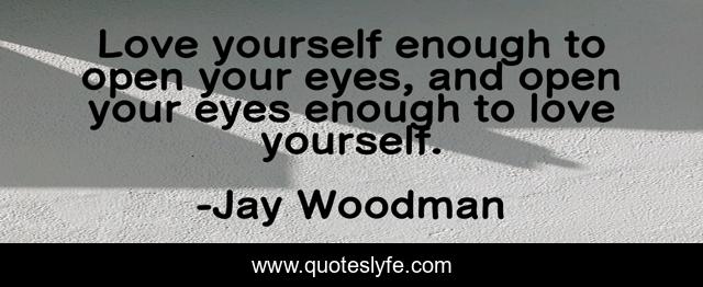 This page presents the quote "Love yourself enough to open your eyes, and open your eyes enough to love yourself.". Author of this quote is Jay Woodman. This quote is about eyes, love, self, affection,.