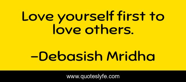 This page presents the quote "Love yourself first to love others.". Author of this quote is Debasish Mridha. This quote is about life, love, knowledge, inspirational, intelligence, philosophy, wisdom, quotes, affection,.