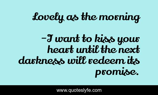 "I want to kiss your heart until the next darkness will redeem its promise. Quotes." Quoteslyfe.com, 2025. Sun. 07 Dec. 2025. <https://www.quoteslyfe.com/quote/Lovely-as-the-morning-209762>.