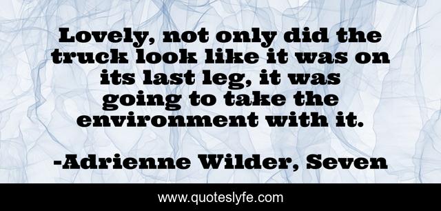 This page presents the quote "Lovely, not only did the truck look like it was on its last leg, it was going to take the environment with it.". Author of this quote is Adrienne Wilder, Seven. This quote is about humorous, funny, comedy, chase,.