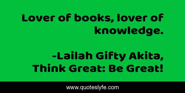 "Lailah Gifty Akita, Think Great: Be Great! Quotes." Quoteslyfe.com, 2025. Sun. 07 Dec. 2025. <https://www.quoteslyfe.com/quote/Lover-of-books-lover-of-knowledge-98840>.