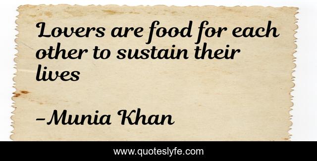 This page presents the quote "Lovers are food for each other to sustain their lives". Author of this quote is Munia Khan. This quote is about life, lovers, love, food, each, foods, lives, lover, sustain,.
