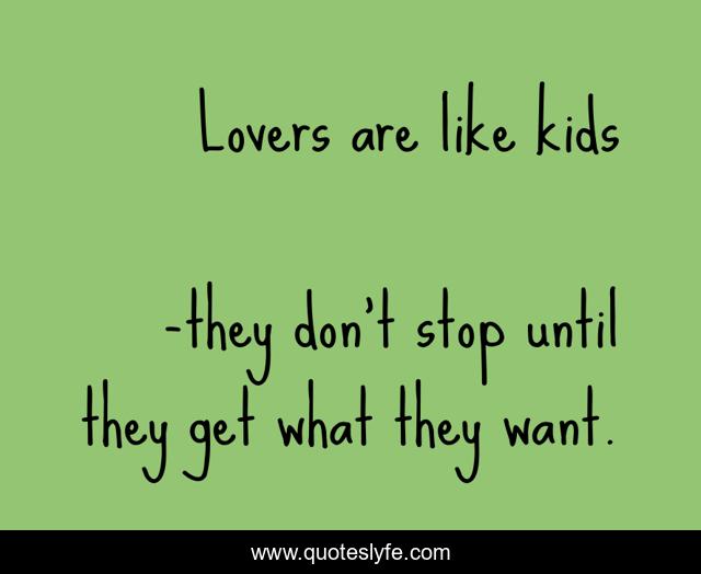 "they don’t stop until they get what they want. Quotes." Quoteslyfe.com, 2025. Sat. 06 Dec. 2025. <https://www.quoteslyfe.com/quote/Lovers-are-like-kids-171891>.