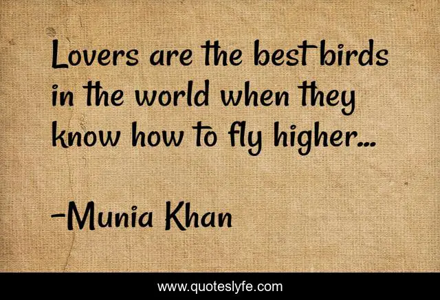 This page presents the quote "Lovers are the best birds in the world when they know how to fly higher...". Author of this quote is Munia Khan. This quote is about fly, lovers, love, love-and-sayings, flying, romance-love, bird, romance, best,.