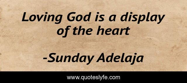 This page presents the quote "Loving God is a display of the heart". Author of this quote is Sunday Adelaja. This quote is about heart, god, display, loving,.