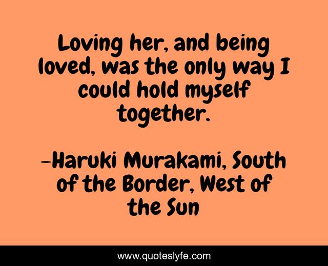 This page presents the quote "Loving her, and being loved, was the only way I could hold myself together.". Author of this quote is Haruki Murakami, South of the Border, West of the Sun. This quote is about need, love, affection,.