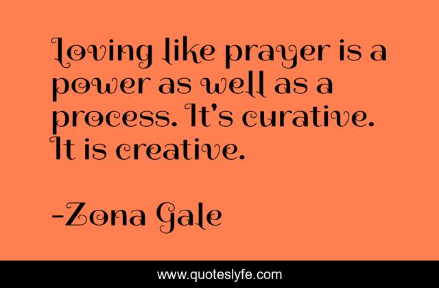 This page presents the quote "Loving like prayer is a power as well as a process. It's curative. It is creative.". Author of this quote is Zona Gale. .