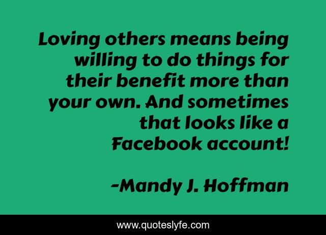 This page presents the quote "Loving others means being willing to do things for their benefit more than your own. And sometimes that looks like a Facebook account!". Author of this quote is Mandy J. Hoffman. .