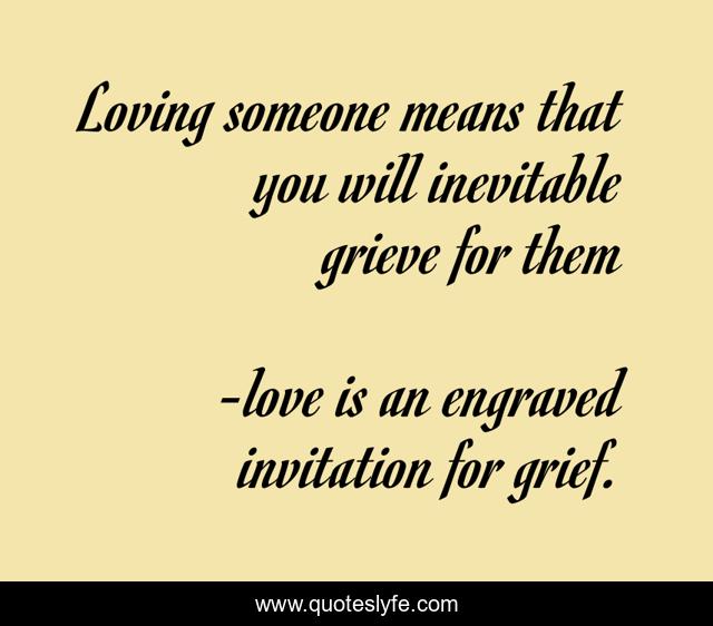 "love is an engraved invitation for grief. Quotes." Quoteslyfe.com, 2025. Fri. 05 Dec. 2025. <https://www.quoteslyfe.com/quote/Loving-someone-means-that-you-will-inevitable-123277>.
