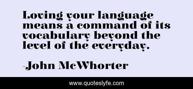 This page presents the quote "Loving your language means a command of its vocabulary beyond the level of the everyday.". Author of this quote is John McWhorter. This quote is about language, vocabulary, loving,.