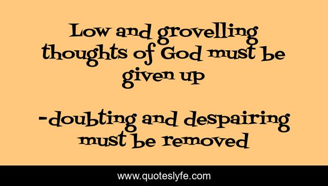 This page presents the quote "Low and grovelling thoughts of God must be given up". Author of this quote is doubting and despairing must be removed. .