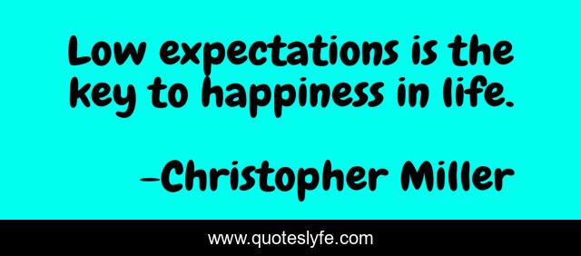 This page presents the quote "Low expectations is the key to happiness in life.". Author of this quote is Christopher Miller. This quote is about life, expectations, key,.