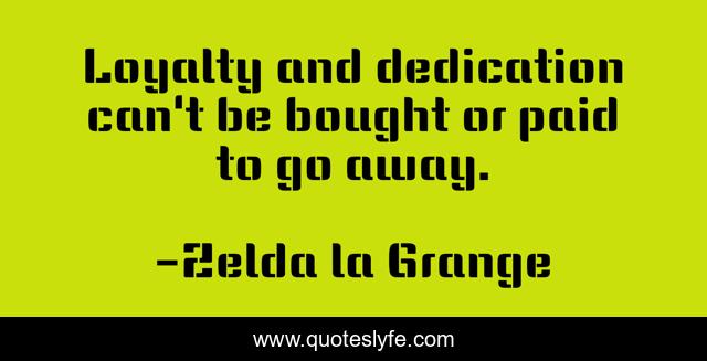 This page presents the quote "Loyalty and dedication can't be bought or paid to go away.". Author of this quote is Zelda la Grange. This quote is about dedication, loyalty,.