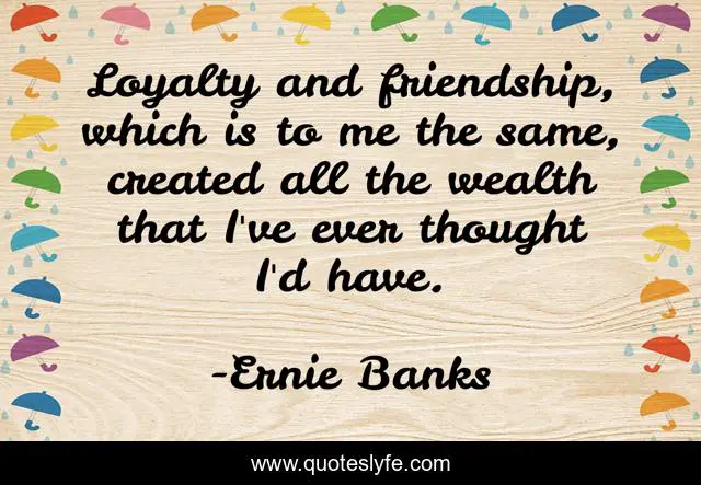 This page presents the quote "Loyalty and friendship, which is to me the same, created all the wealth that I've ever thought I'd have.". Author of this quote is Ernie Banks. This quote is about me, loyalty, wealth,.