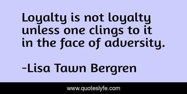 This page presents the quote "Loyalty is not loyalty unless one clings to it in the face of adversity.". Author of this quote is Lisa Tawn Bergren. This quote is about enthusiasm, hardship, inspirational, loyalty,.