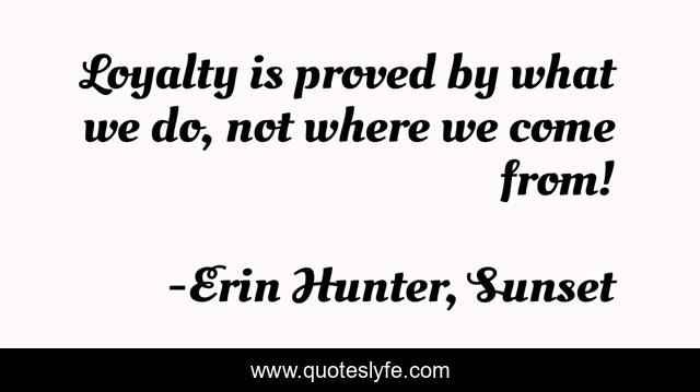 "Erin Hunter, Sunset Quotes." Quoteslyfe.com, 2025. Sun. 07 Dec. 2025. <https://www.quoteslyfe.com/quote/Loyalty-is-proved-by-what-we-do-222768>.