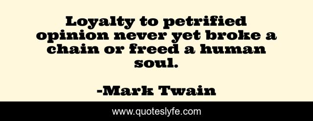 This page presents the quote "Loyalty to petrified opinion never yet broke a chain or freed a human soul.". Author of this quote is Mark Twain. This quote is about positive, confidence, creating, change,.