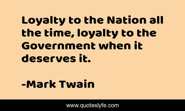 This page presents the quote "Loyalty to the Nation all the time, loyalty to the Government when it deserves it.". Author of this quote is Mark Twain. This quote is about government, loyalty, nation,.