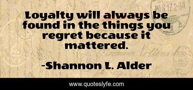 This page presents the quote "Loyalty will always be found in the things you regret because it mattered.". Author of this quote is Shannon L. Alder. .