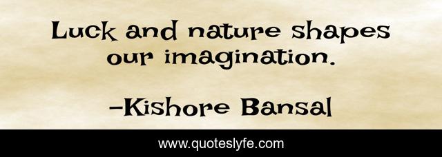 This page presents the quote "Luck and nature shapes our imagination.". Author of this quote is Kishore Bansal. This quote is about imagination, shape, luck, nature,.