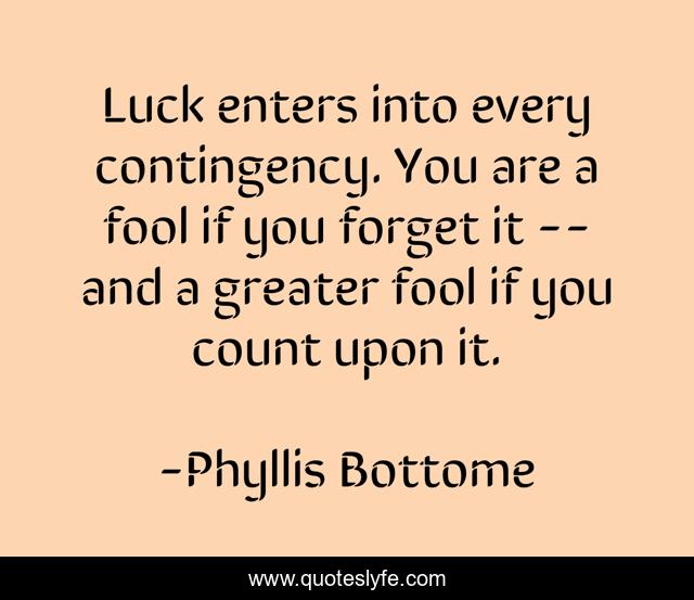 This page presents the quote "Luck enters into every contingency. You are a fool if you forget it -- and a greater fool if you count upon it.". Author of this quote is Phyllis Bottome. .