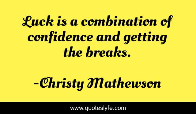 This page presents the quote "Luck is a combination of confidence and getting the breaks.". Author of this quote is Christy Mathewson. This quote is about recognize, maximize,.