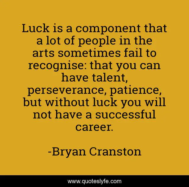 This page presents the quote "Luck is a component that a lot of people in the arts sometimes fail to recognise: that you can have talent, perseverance, patience, but without luck you will not have a successful career.". Author of this quote is Bryan Cranston. This quote is about perseverance, luck,.