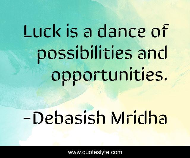 This page presents the quote "Luck is a dance of possibilities and opportunities.". Author of this quote is Debasish Mridha. This quote is about life, love, knowledge, inspirational, intelligence, philosophy, wisdom, quotes, affection,.