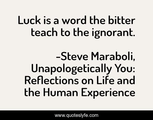 This page presents the quote "Luck is a word the bitter teach to the ignorant.". Author of this quote is Steve Maraboli, Unapologetically You: Reflections on Life and the Human Experience. This quote is about life, success, positive, motivational, confidence, ignorant, optimistic, bitter, luck,.